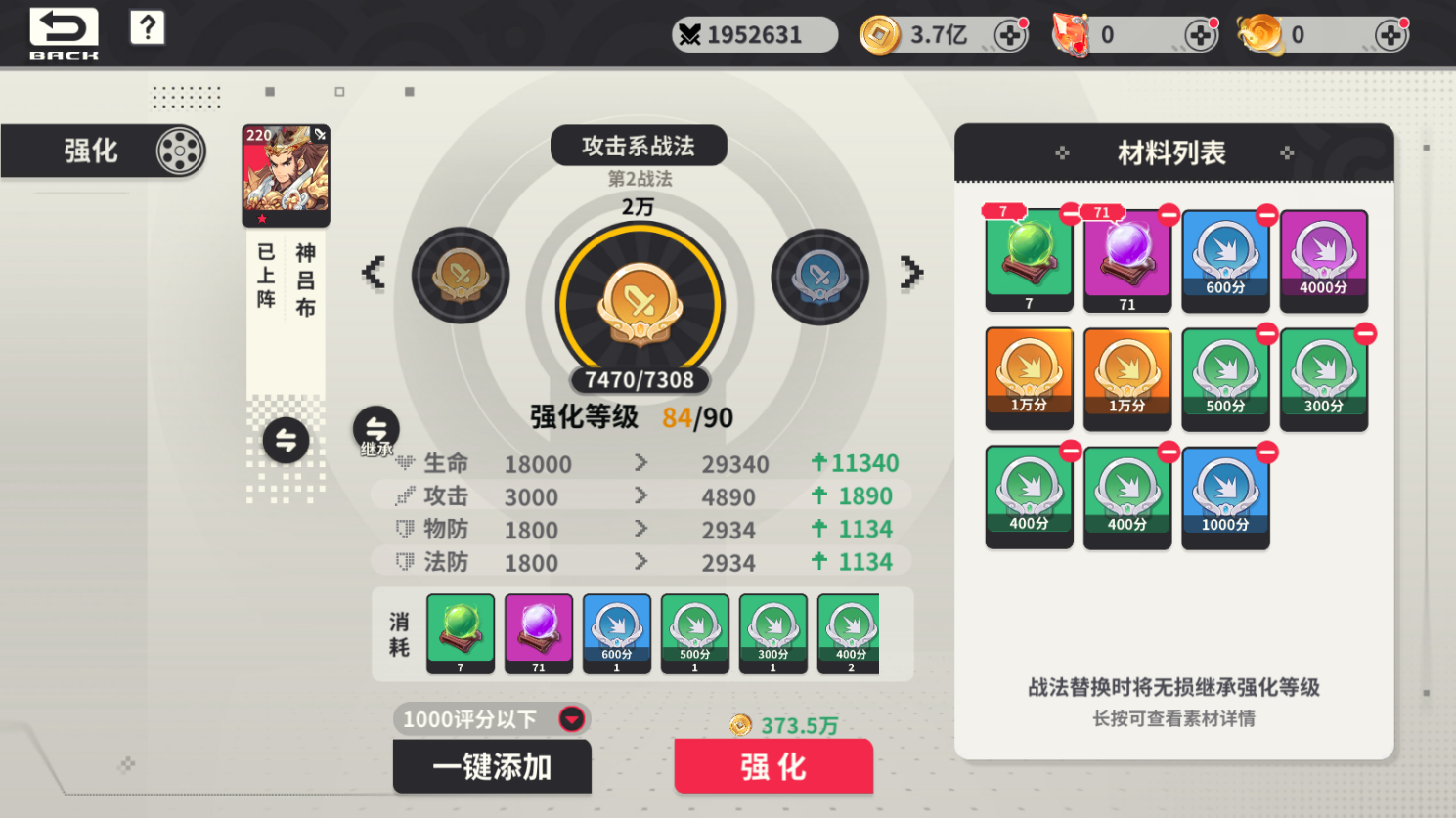 武将技能需要领悟战法后激活,不同类型武将需要使用对应的战法类型,战法可培养升级,升级增加战法基础属性;战法评分大于或等于五万分可传承。